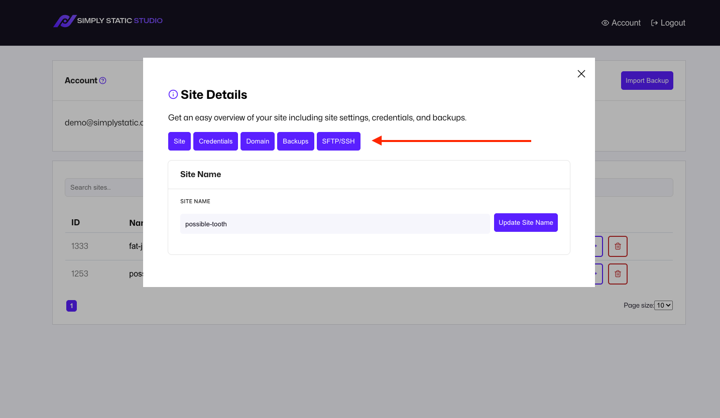 - Access your site via SSH or SFTP
