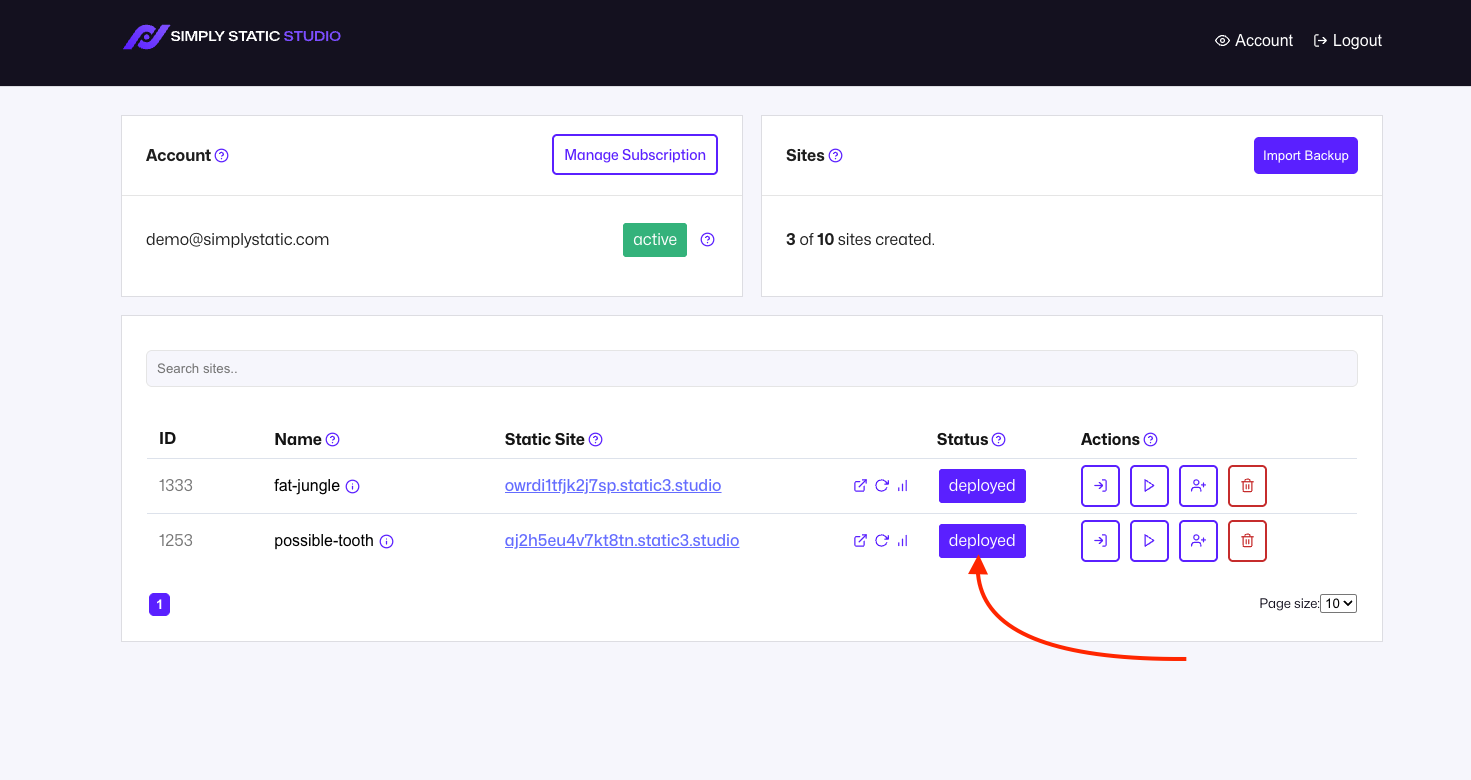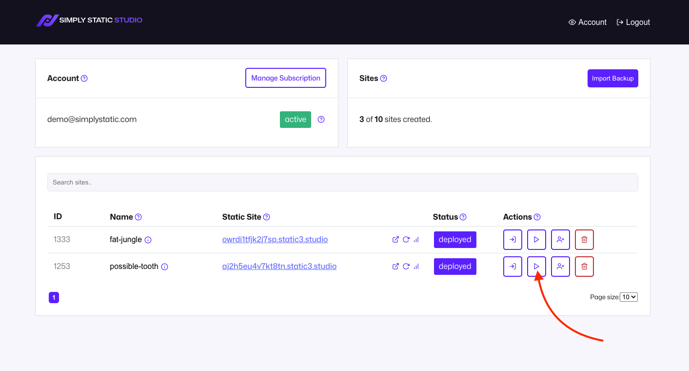 This action will update your static site based on the latest changes to your WordPress website. You can always perform this from within your WordPress dashboard - this one is just quicker to access.