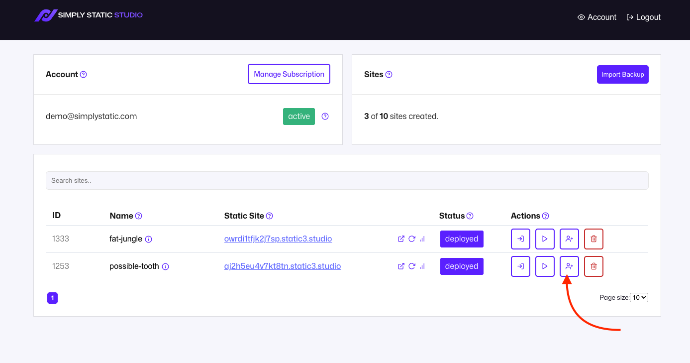If the invited e-mail address does not have an account on Simply Static Studio, we will send them an invitation e-mail to create one.