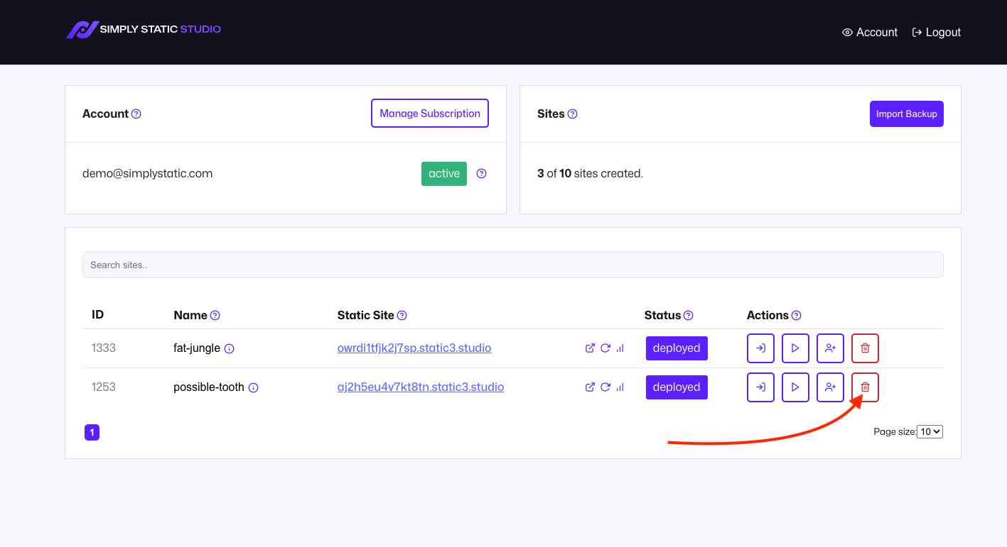 Delete Site