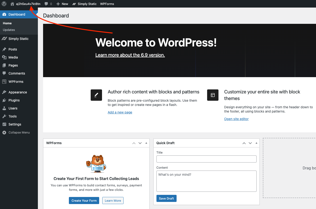 Once you click on it, it will open the WordPress instance of your website in a new tab: