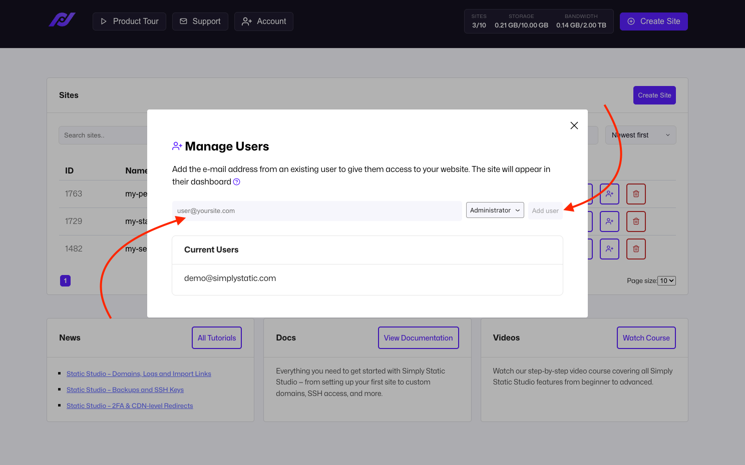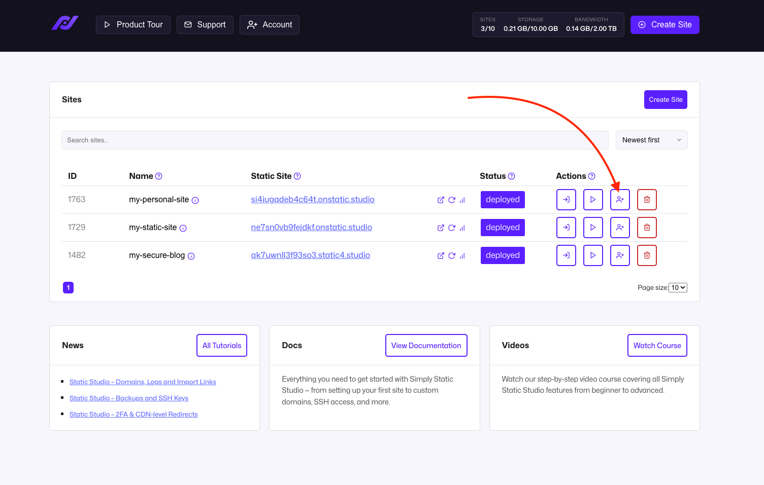 Simply Static Studio is built for teams, and we put a lot of effort into making managing access straightforward.
