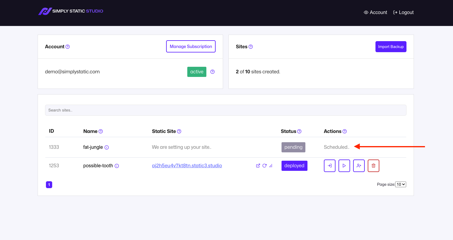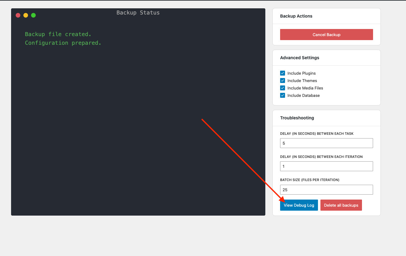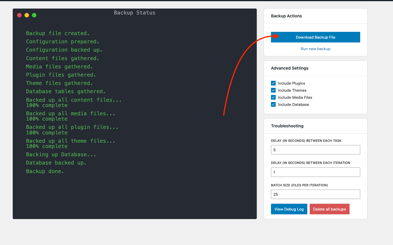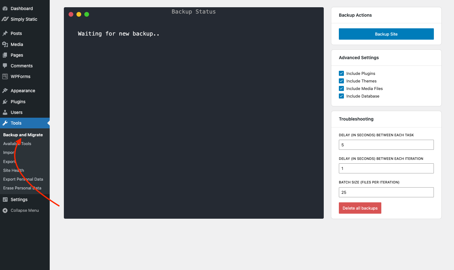 Most of the time, you can simply click the Backup Site button and wait for it to finish.