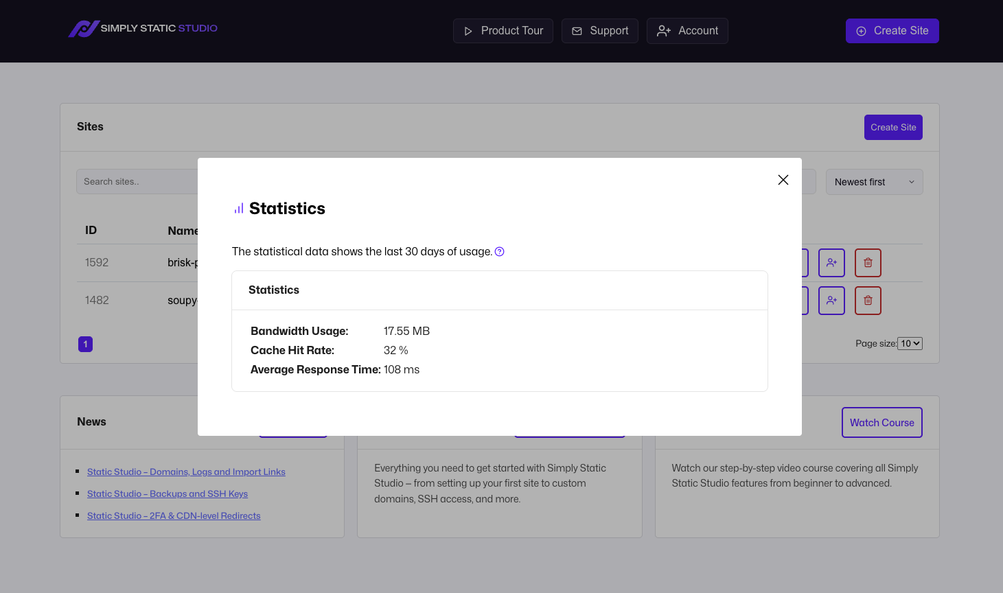 We broke the data down to the three most important facts: Bandwidth Usage, Cache Hit Rate, and Average Response Time of your static website: